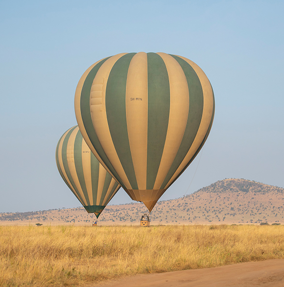 Your pilot can precisely control the altitude of your balloon: sometimes flying at treetop height, sometimes lower, offering a unique perspective and great photographic opportunities of the wildlife below.At other times he will ascend to 1000 ft. (300m) or more to see the enormity and wonderful panorama of the Serengeti. From time to time the pilot increases more heat into the balloon with the powerful whisper burners. In between these burns, there is silence apart from the natural sounds below.